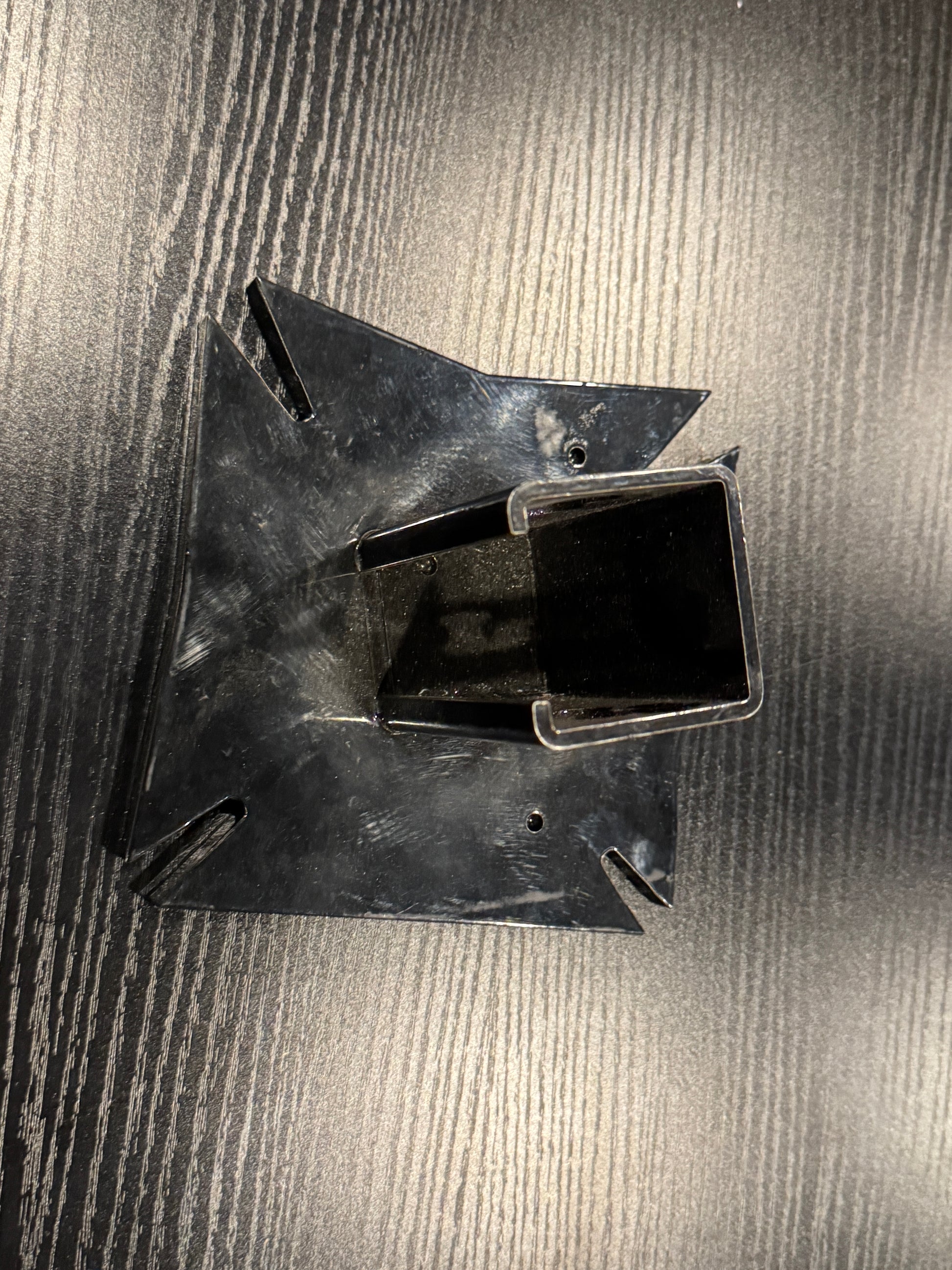 This fuckin' thing! Looks to be 3/8" thing and seamless. The logo is deboss and paint in black. Fits a 2" square receiver and is about 3.74 long. Its just under 6" x 6".
